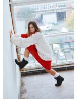 “Aida” Chunky Sweater, Wool, White and Red