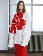 A celebration of heritage, craftsmanship, and storytelling, the AIDA sweater brings the Ami Amalia peony—the brand’s iconic emblem of strength and tenderness—into a sculptural, contemporary knit. Created from 100% responsibly sourced wool, AIDA combines multiple knitting structures, from rich cables to smooth surfaces, forming a tactile landscape that highlights both technique and tradition.