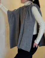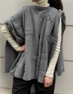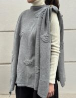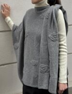 Poncho with intarsia peony elements knitted from extrafine Italian merino.