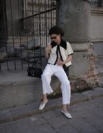 The Knitted Jacket, short sleeve edition, White with Black